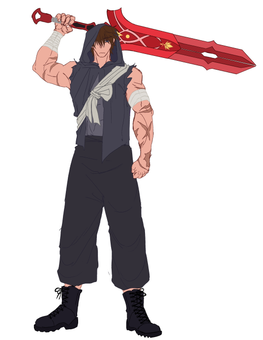 his connection to them is a mystery as well, though the great blade he carries bears their insignia.